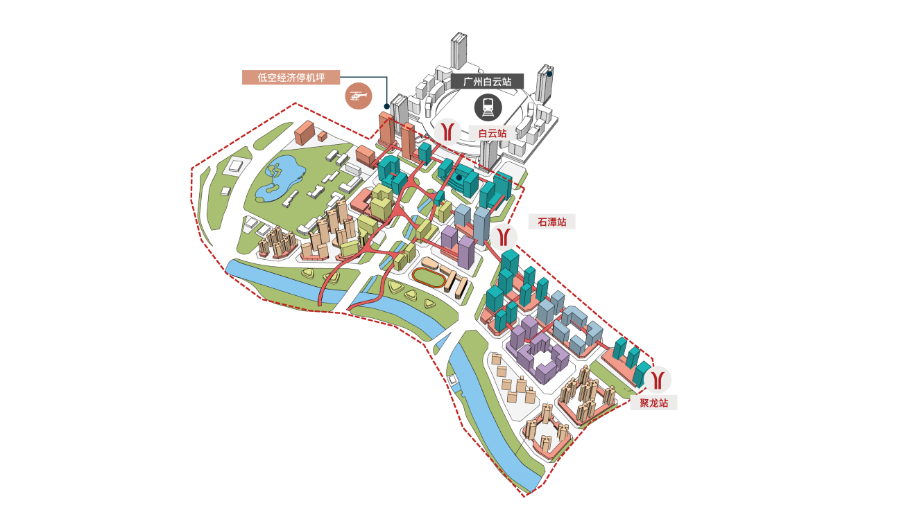 依托亚洲最大的TOD综合交通枢纽——广州白云站,项目坐拥“高铁+地铁+城际”立体交通网络,可实现1小时畅达大湾区、3小时辐射东南亚。这一战略区位优势,将高效吸引全球高端人才、先进技术、资本与客户资源,为园区持续注入国际动力与发展活力。