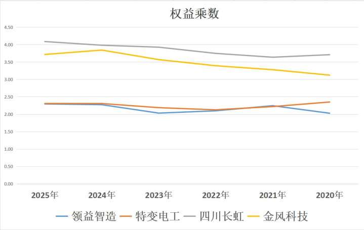 财务杠杆:四川长虹>金风科技>特变电工>领益智造